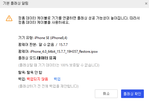 기본 플래싱, 아이튠즈 플래싱, 전문 플래싱, 일괄 플래싱 이렇게 있는데,