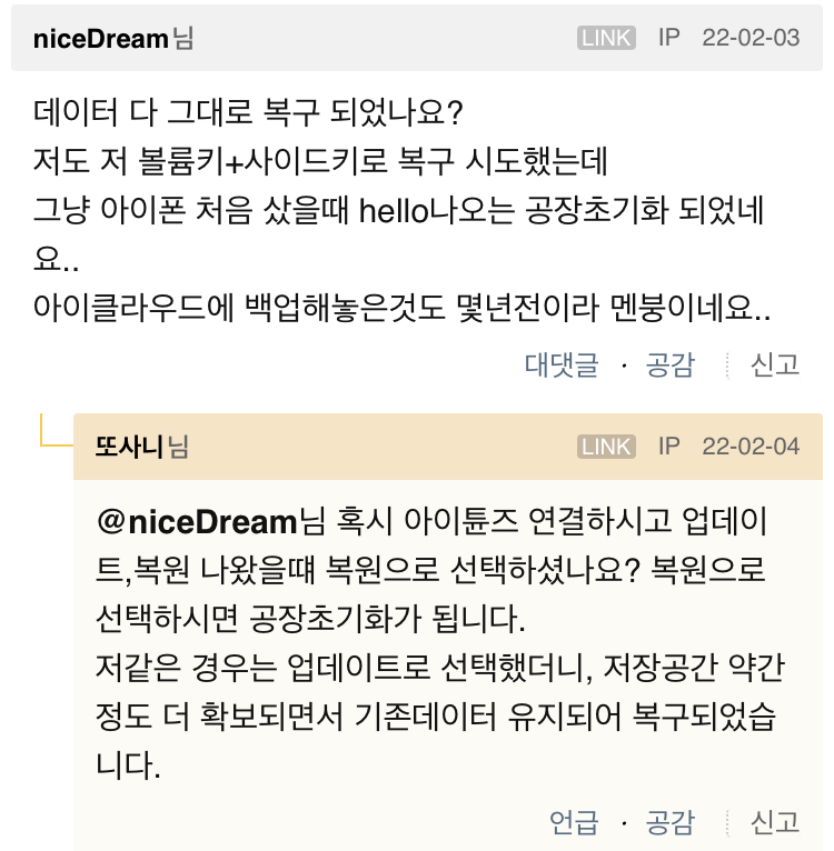 그러나 이렇게 해서도 엄마의 아이폰은 복구에 실패했다.