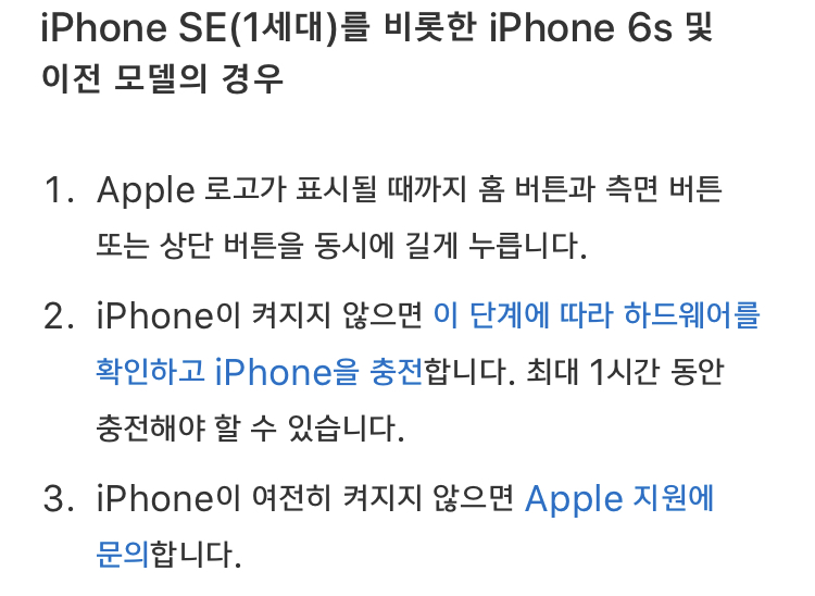 복구모드로 들어가려면 위 사항대로 했는데, 이렇게 하고 나서는 엄마의 아이폰se는 무조건 아이폰이 충전선을 연결하여 켜질때마다 복구모드로 들어가게 되었다. 점점 벽돌화 되어간다.