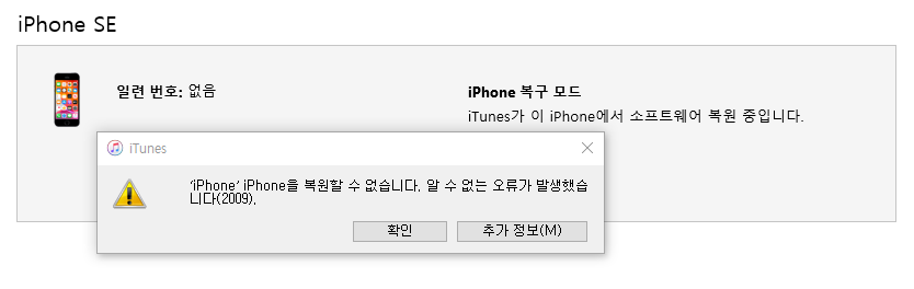 iphone을 복원할 수 없습니다. 알 수 없는 오류가 발생했습니다. (2009)